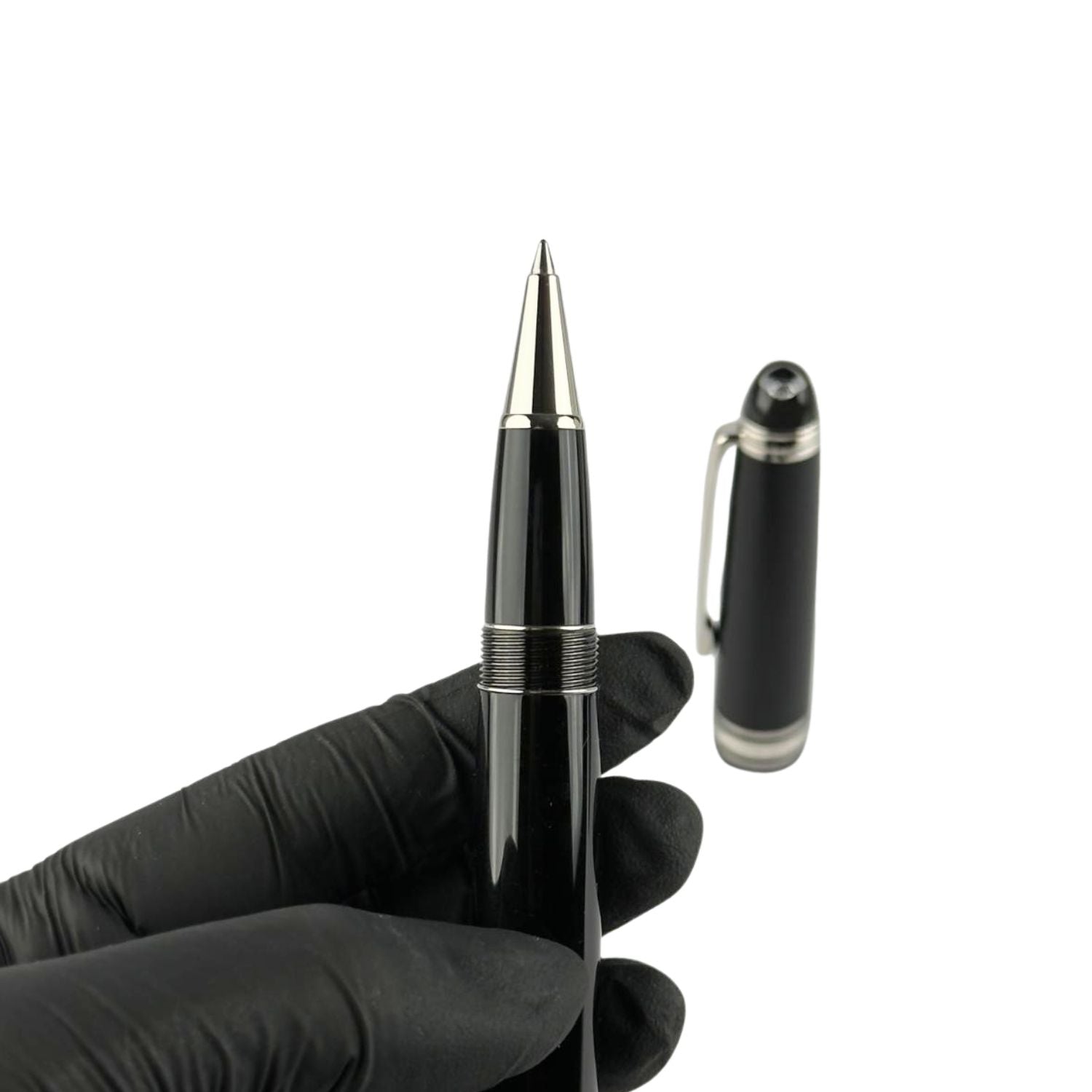 En la cúspide, el emblema Montblanc coronado por un diamante tallado en forma de estrella simboliza la unión entre artesanía y lujo atemporal. Su sistema rollerball ofrece una escritura fluida y precisa, ideal para quienes aprecian la elegancia en cada trazo.