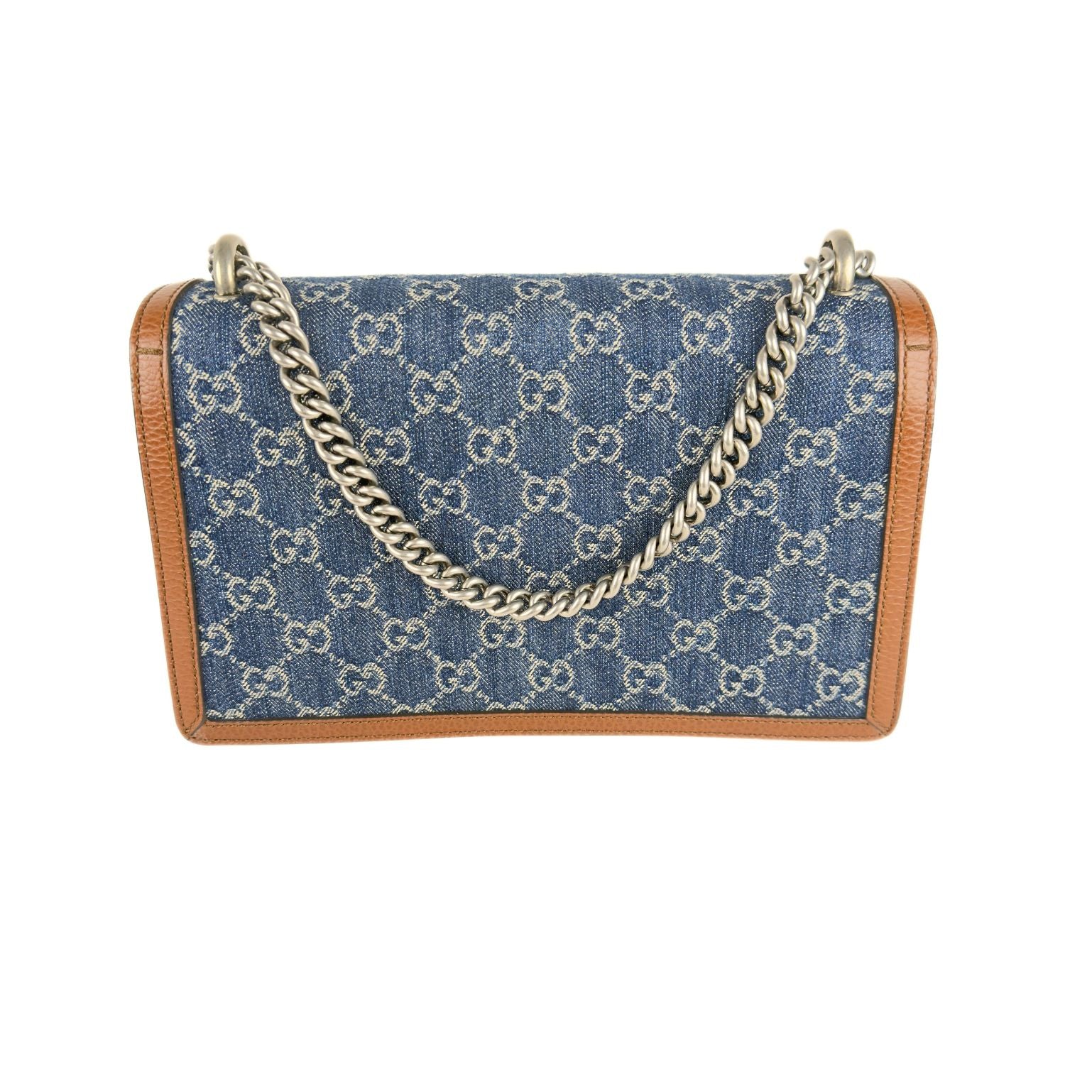 El bolso Gucci Dionysus es uno de los diseños más icónicos de la casa italiana. Confeccionado en lona GG Supreme, combina elegancia y carácter con su distintivo cierre de doble cabeza de tigre, inspirado en la mitología griega de Dionisio. Su estructura firme y cadena metálica permiten llevarlo al hombro o cruzado, convirtiéndolo en una pieza versátil para el día o la noche. Un clásico moderno que refleja el ADN sofisticado y audaz de Gucci.