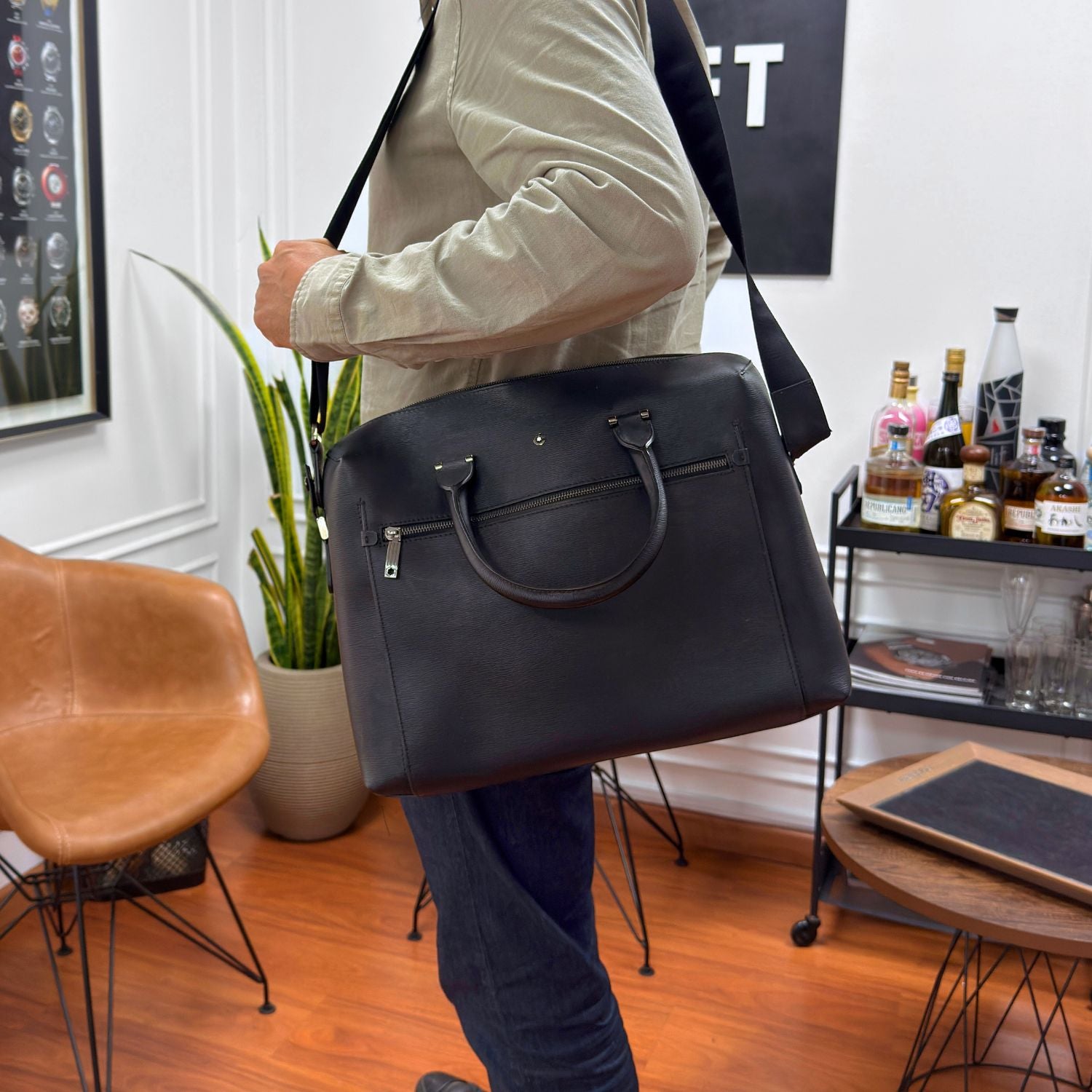 Confeccionado en cuero de alta calidad, ofrece una estructura refinada y resistente, ideal para el uso diario. Su interior está pensado para organizar documentos, laptop y esenciales de trabajo con comodidad, mientras que su estética sobria transmite distinción y confianza en cualquier entorno.